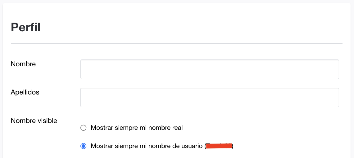 Aquí puedes elegir mostrar tu nombre de usuario o tu nombre real. No te preocupes, se puede cambiar en cualquier momento.