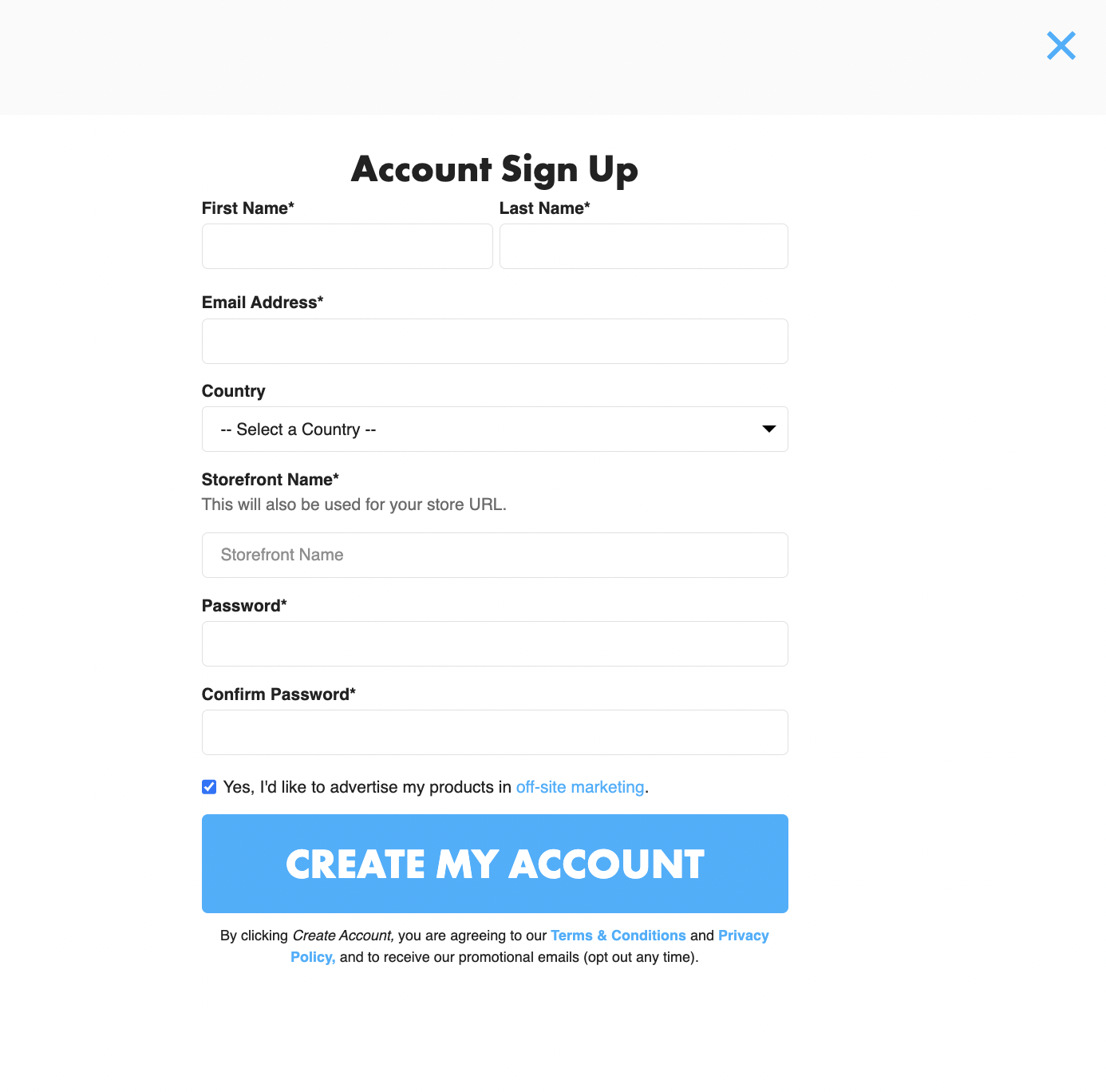 - Cliquez sur Create Your Store pour ouvrir la page de création de compte TeePublic.